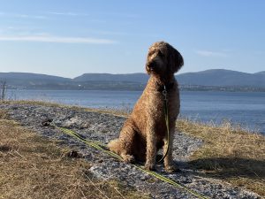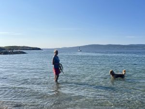 Wir fahren daher an den alten Fährenkai nach Sommerset – einem Weiler mit vielleicht 3 Häusern. Hier stehen schon 7 andere Wohnmobile und schauen uns argwöhnisch an. Aber wir machen nur eine Pause. Merle steht am Ufer und beobachtet Schweinswale, während wir Kaffee und Tee bereiten.