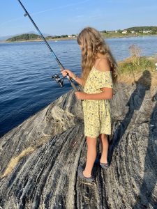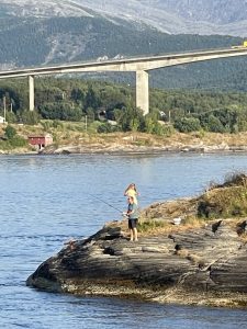 Wir fuhren nach Ballangen, um einzukaufen und damit Merle ihre Karte an Johanna abschicken konnte. Wir sind gespannt, ob und wann sie ankommen wird. Hier gibt es auch eine Bäckerei namens Myklevold, bei der ich ein Roggenbrot sowie einige Kanelknuter kaufe.