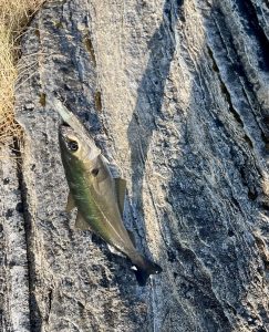 Christian hat noch 5 weitere gefangen. Aber da die allesamt sehr klein waren, etwa 30 – 40 cm, hat er sie alle wieder ins Meer entlassen. Da er nicht wusste, welche Fische es waren und ab welcher Größe man sie fangen darf, ist er auf Nummer sicher gegangen. Kein Fisch musste für das Foto hier im Blog sterben 😉