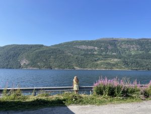 Rasch kommen wir in einer unwirklichen Landschaft an. Es beginnt an der Brücke zur Halbinsel mit dem Berg Valletinden. Hier an einem Ort namens Molnosen beginnt das Meer, türkis wie in der Südsee zu werden. Wir halten nicht, denn wir wollen die nächste Fähre noch bekommen. Außerdem sagt Christian: „zwischen 12 und 3 hat der Fotograf frei“, weil das Licht zu steil ist.