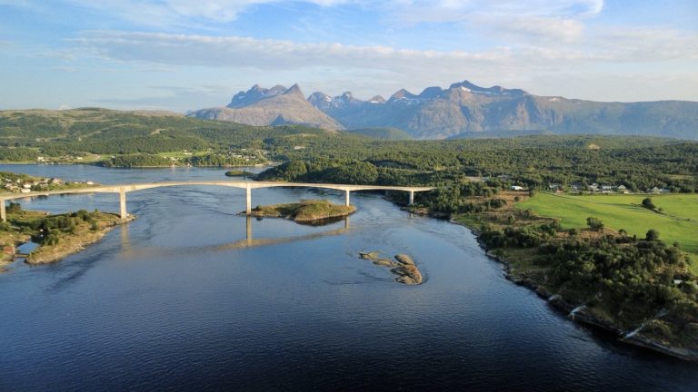 Rasch kommen wir in einer unwirklichen Landschaft an. Es beginnt an der Brücke zur Halbinsel mit dem Berg Valletinden. Hier an einem Ort namens Molnosen beginnt das Meer, türkis wie in der Südsee zu werden. Wir halten nicht, denn wir wollen die nächste Fähre noch bekommen. Außerdem sagt Christian: „zwischen 12 und 3 hat der Fotograf frei“, weil das Licht zu steil ist.