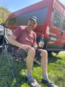 Am Bus angekommen gönnten wir uns vor dem Bus verweilend ein Eis und frische Erdbeeren, als uns eine Frau ansprach:“Waren Sie nicht letzten Winter auch hier? Ich erkenne das Auto und den Hund!“ Wie lustig! Ja, wir erinnerten uns auch an die Familie, mit der wir über Floki im Herbst ins Gespräch gekommen sind. Was ein Zufall!