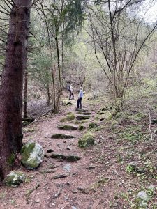 Am Vormittag erkundete Merle die 3 Spielplätze auf dem Campingplatz. Ihr Tipp: Die Seilbahn ist extrem schnell. Zudem gibt es ein Trampolin und andere tolle Dinge. Am Nachmittag wandern wir in die kleine Stadt und vom Marktplatz aus folgen wir dem Wanderweg Nr. 1 hoch bis zu den Schweineböden. Das ging nur mit viel Gequengel seitens Merle.