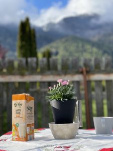 Währenddessen war Floki platt wie ein Flunder und hat im Bus geschlafen. Anschließend gab es für uns alle Abendessen im Restaurant (Knödel-Tris, Spargel, und Schlutzkrapfen) und natürlich wieder ein Zirbenschnäpsle. Gute Nacht.