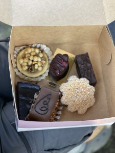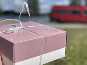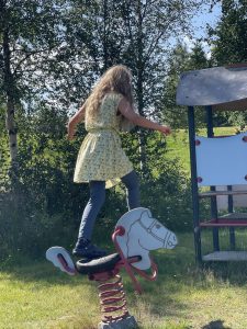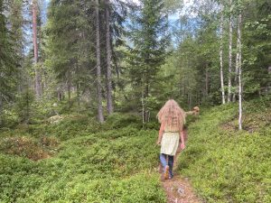 Anschließend fahren wir nach Storuman. Dabei kommen wir in dem Weiler Dorotea vorbei. Hier halten wir spontan an der lokalen Konditorei an und ich gehe erstmal Törtchen shoppen. Mit diesem machen wir dann eine Fika in Vilhelmina, am Rastplatz Vojman. In Stensele kreischte Merle, denn hier gibt es ein steiniges Flussbett, wo sie stundenlang hin und her hüpfen könnte. Wollten wir aber nicht.