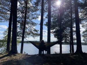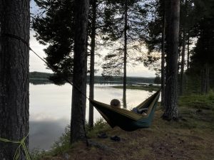Das Wetter wird immer besser und wir schwitzen bei 20 – 25 Grad und Sonnenschein. Daher beschließen wir, nicht mehr viel weiter zufahren, sondern einen schönen See zu suchen und uns abzukühlen. Ich suche den Campingplatz Storuman heraus, der 4,9 von 5 Sternen hat. Aber als wir dort ankommen, gefällt er uns gar nicht. Warum, können wir nicht genau sagen. Aber wir fahren weiter, nochmal 30 Minuten durch das Nichts bis nach Blattnicksele am Sandsjön in der Provinz Västerbotten.