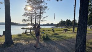 Unser erster Halt war „Schwedens bester ICA-Supermarkt“ in Torsby. Hier kauften wir groß ein, bevor es in den Norden weitergehen konnte. Eigentlich wollte ich zum Zufallsfund „Välgunaho“, einem waldfinnischen lost place, auf dem es spuken sollte. Doch die Sonne brannte noch immer 20 Stunden am Tag bei 29 Grad – und wer hat da schon Lust, durch den Wald zu wandern, wenn er auch schwimmen könnte? Daher reservierte ich uns einen Platz auf dem Sollerön Campingplatz und wir fuhren 4 Stunden nordwärts in der prallen Mittagssonne. Gut – denn ich darf ja eh noch nicht wieder in die Sonne mit meinem Sonnenbrand.