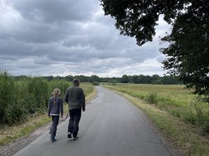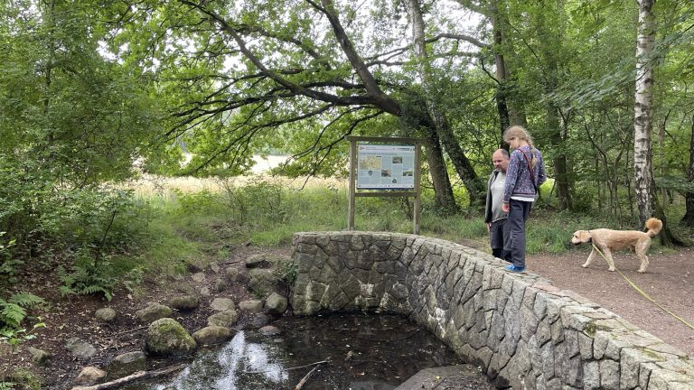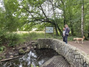 Bei der kleinen Hunderunde um Mitternacht hat Christian sogar eine Ringelnatter gesehen. Am nächsten Morgen sieht alles ganz anders aus. Wir haben die Alsterbrücke in direkter Nähe, umgeben von übermannshohem Schilf. Hundeleute und Vogelbeobachter parken neben uns. Nach dem Frühstück wünscht sich Merle die Wanderung zur Alsterquelle. Es sind nur wenige Kilometer und der Spaziergang führt durch zwei verschiedene Naturschutzgebiete – Oberalsterniederung und Henstedter Moor. Hier sehen wir unterwegs noch eine Schlange im hohen Riedgras.