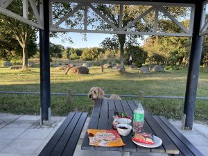 Frisch gestärkt geht es weiter. Wir wollten noch 5 Stunden bis durch den Elbtunnel fahren. Aber irgendwie waren wir alle viel zu müde und kamen nur bis Skanderborg. Hier gibt es den tollen Rastplatz „fuglsang“. Hier darf man 25 Stunden parken, es gibt einen Spielplatz und einen Wanderweg, Picknicktische und ein WC. Und das Beste ist: man hört die Autobahn kaum, geschützt durch Bäume und Entfernung. Ist und abends um 22:30 Uhr aber alles egal, wir fallen einfach nur ins Bett.