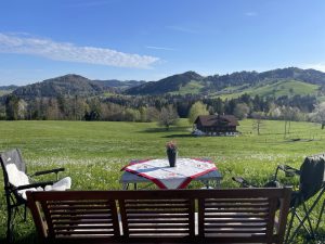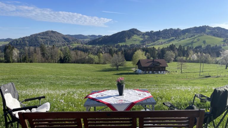 Der Stellplatz Hochgratblick (kostet btw 24 Euro – 15 Euro für das Auto plus 9 Euro Kurtaxe für 3 Personen) ist wirklich schön gelegen.