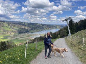 Während wir uns des Lebens gefreut haben, sind Kind und Hund wie verrückt herumgetollt. Ausgeruht bzw. abgespielt ging es für uns fünf dann weiter zum Alpsee. Eigentlich wollten wir wandern, aber Christians Knie ist noch immer etwas malad.