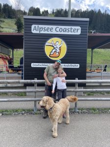 Aber es gibt ja noch andere Möglichkeiten hier. Bei Immenstadt gelegen ist die Alpseebergwelt. Ein Erlebnisberg mit Deutschlands längster Sommerrodelbahn, einem Abenteuerspielplatz, Klettergarten und Streichelzoo.