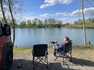 Der Schwarzfelder Hof ist ein Erlebnisbauernhofcamoingplatz. Wir erhielten einen Premium-Stellplatz direkt am kleinen Sonnensee, haben grillgut im Hofladen gekauft und im Sonnenschein am See gegrillt. Flokis Leine war so lang dass er ins Wasser spielen gehen konnte. Merle verschwand bei den Tieren, den Spielplätzen und schlussendlich in der Spielschule und dort im Heu.