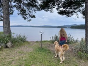 Leider ist das Ausführen von Hunden hier im/am See verboten. Merle freundet sich sofort mit Ilja und Lisa an und ward den ganzen Nachmittag und Abend nicht mehr gesehen. Lustigerweise hallen die Stimmen hier am Stand so, als ob man in einer Höhle ist.