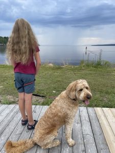 Ilja und Lisa begleiten mich auf dem Hundespaziergang durch den Wald und die Straße entlang. Ilja rannte mit Floki um die Wette und alle freuten sich des Lebens. Merle ging lieber mit deren Mutter Sara echte Blaubeeren pflücken. Eine kleine Schale voll ist´s geworden.