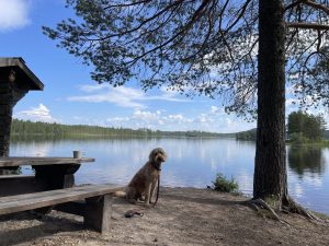 Unser nächster Stopp ist der „Distriktsveterinärerna“. Hier bekommt Floki von der verzückten Mitarbeiterin seine Wurmkur verabreicht, die er für die Einreise nach Norwegen braucht. 30 Euro ist gar nicht so teuer wie befürchtet. Im Anschluss daran gehen Merle und Christian noch im Supermarkt „Willy´s“ einkaufen, bevor es dann weiter gen Norden geht.