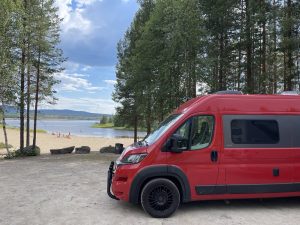 Heute ist der Tag, an dem wir der Zivilisation auf dem Campingplatz Lebewohl sagen und nach Norden aufbrechen wollen. Etwas mehr Wildnis wird uns guttun. Christian hat schon zuviel von dem Campinggehabe. Gestern ist Ozzy Osbourne gestorben und ein schwedischer Camper hatte den ganzen Abend laut seine Musik an als Tribut. Immerhin Hard Rock, könnte schlimmer sein.