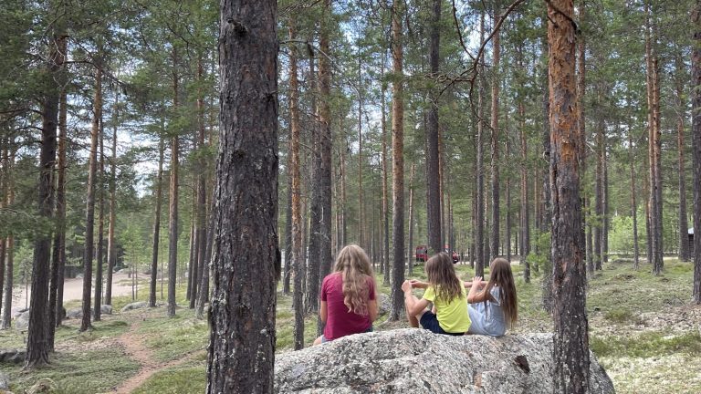 Frisch gestärkt fahren wir noch ein Stündchen weiter durch das Nichts – bestehend aus Kiefernwäldern – bis zur nächsten Ortschaft namens Sveg. Dort fahren wir an die dortige Badelagune. Hier finden wir knapp einen Parkplatz, doch kurz später gibt es Regenschauer und die Einheimischen verschwinden mit ihrem Autos heimwärts und nur wir und ein Wohnmobil aus der Schweiz bleiben übrig.