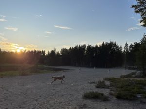 Abendessen atmete Merle in Sekunden weg, um wieder spielen gehen zu können. Gegen 23 Uhr haben wir sie dann mal von Strand und Steinen abgefischt und ins Bettchen gelegt. Müde genug sollte sie wohl sein. Am Abend kam ebenfalls noch die Sonne hervor or und zauberte eine tolle Lichtstimmung in die Wälder.