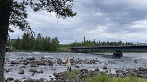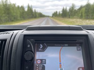 Wir fahren vorbei an Svappavaara und die Via Laponia durch Karesuando und den Norrskensvägen über den Torneälven bis nach Kaaresuvanto in Finnland. Und der Fluss ist auch eine Art „Zeittunnel“, denn plötzlich ist es eine Stunde später.