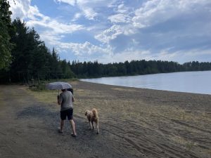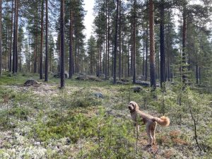 Hier gibt es einen kleinen Waldweg, auf dem ich mit mit Floki getraut habe (und nur ein wenig von den Mücken gefressen wurde – man muss nur immer schnell gehen und niemals stehenbleiben).