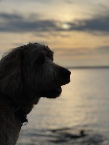 Mit Floki gehe ich heute eine verlängerte Hunderunde bis zur übernächsten Landzunge, wo auch noch zwei Camper stehen. (auf der anderen Seite von uns am Privatstrand stehen mittlerweile 8 Womos, bei uns sind es 7). Sara, Maik, Ilja und Lisa verabschieden sich von uns und insbesondere von „Barri“, dem kleinen Bärchen Floki.
